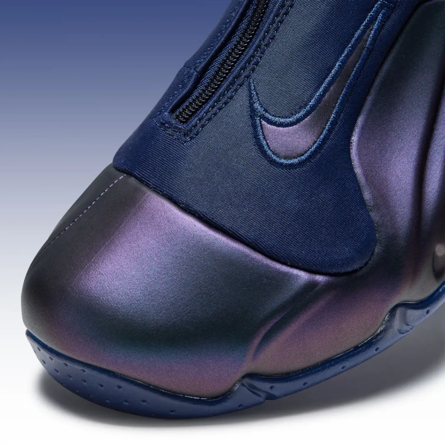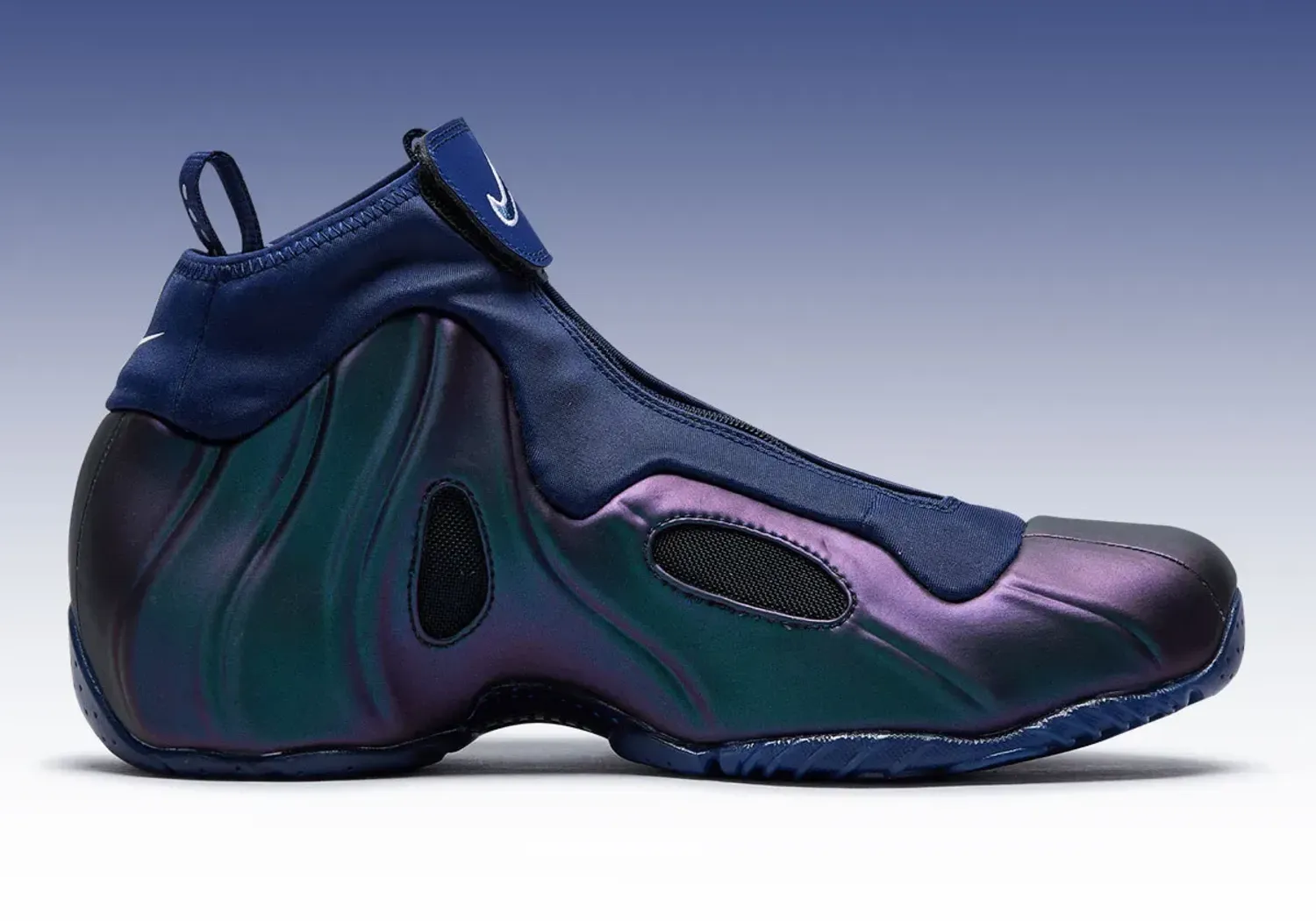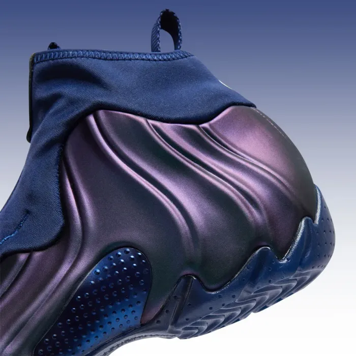 This blend of the familiar “Eggplant” with navy blue uppers is actually a Player Exclusive created for NBA legend and current Dallas Mavericks head coach Jason Kidd, once the face of Nike Basketball’s non-signature product line. First made just for the All-Star athlete, this Air Flightposite release